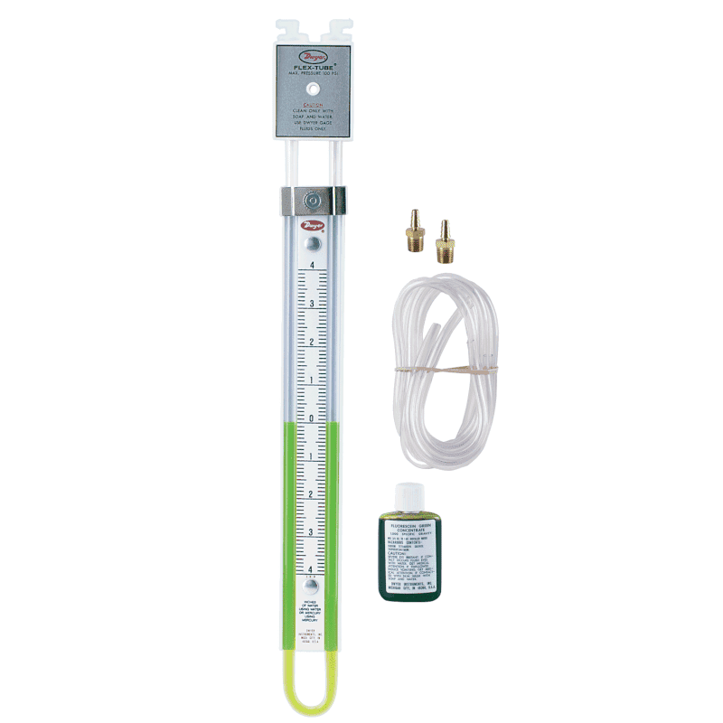 Dwyer manomètre à tubes en U Modèle: 1222-M600-W/M Etendue de mesure: M600 (300...0...300 mm w.c.) Livré avec: - 2 aimants, 2 bouchons et 2 adaptateurs en plastique - flacon de liquide manométrique vert