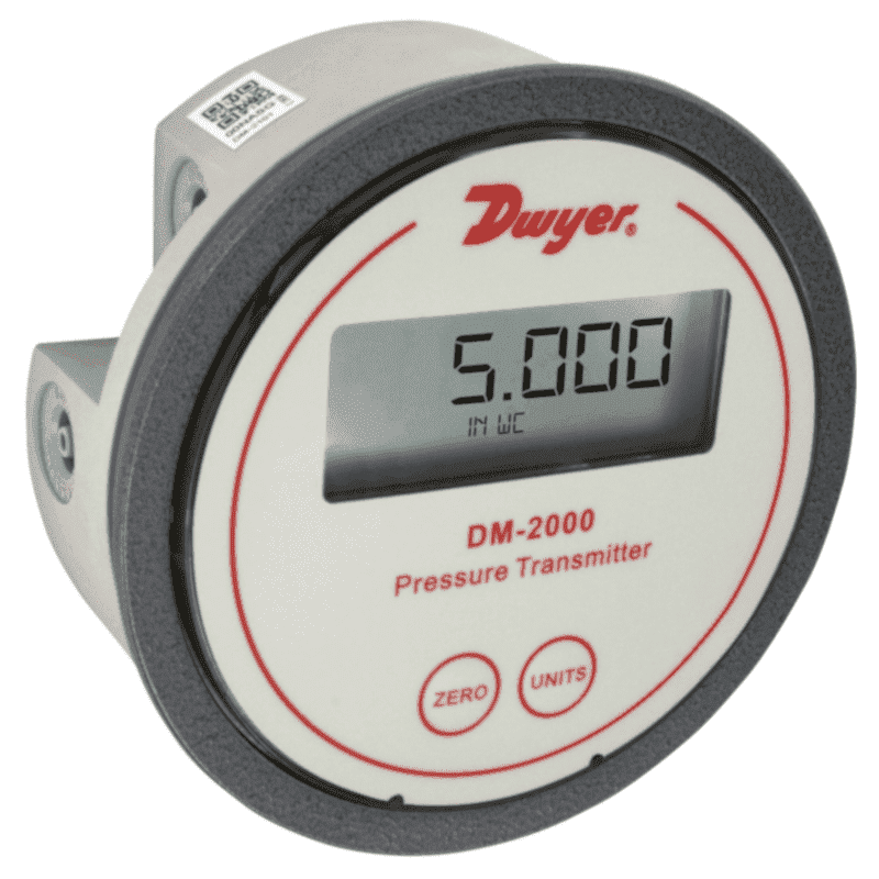 Les transmetteurs de pression différentielle de la série DM2000 so nt utilisés pour la mesure de pression d’air et de gaz compatibles (non corrosifs et non combustibles). Ce transmetteur délivre un signal 4-20 mA. Le boîtier du DM 2000 est de même diamètre que les manomètres Magnehilic standards et peut donc s’adapter aux mêmes découpes. Les raccordements de pression sont directement intégrés au boîtier et permettent une installation rapide et facile. Reglage du zéro et de l’étendue en facade à l’aide de boutons poussoires digitaux. Disponible avec ou sans afficheur LCD.